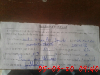 | Name: Ha**** Fa**** Al**** Designation: (School Headmaster's/Headmistress's) Pst Phone/Cell Number: 03**** |