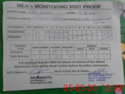 | Attendance Register | Head Teacher | MEA with School | Visit Proof |
