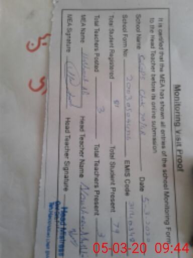 | Attendance Register | Head Teacher | MEA with School | Visit Proof |