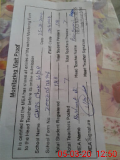 | Certified that this School was Inspected by the Undersigned MEA/DMO Today and the Information Stated Above is as Per Record. | |||||