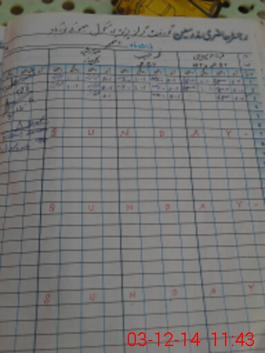| CNIC | Full Name | Designation | R/C | Absence During Last Calender Month |