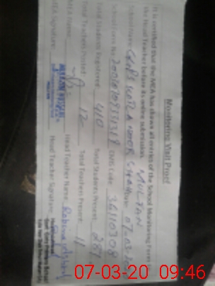 | Attendance Register | Head Teacher | MEA with School | Visit Proof |