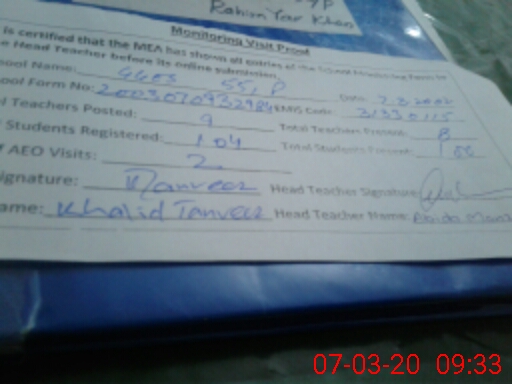 | Certified that this School was Inspected by the Undersigned MEA/DMO Today and the Information Stated Above is as Per Record. | |||||
