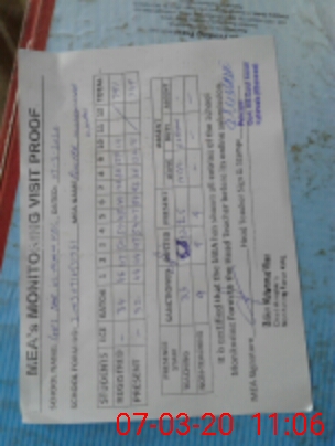 | Remarks (Use Separate Page if Required): Head teacher physically present but his name not mentioned in teacher list on mea tab | |||||