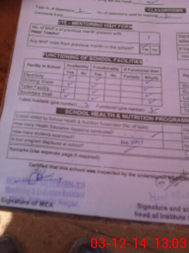 | Attendance Register | Head Teacher | MEA with School | Visit Proof |