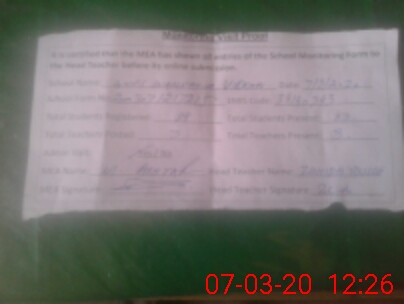 | Attendance Register | Head Teacher | MEA with School | Visit Proof |