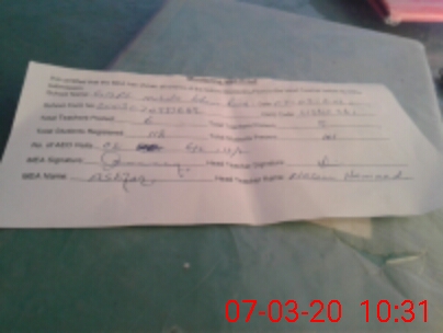 | Name: SA**** AM**** Designation: (School Headmaster's/Headmistress's) PST Phone/Cell Number: 03**** |