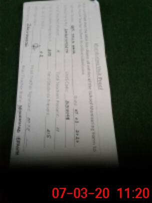 | Monitoring Date: 07-03-2020 | Start Time: 07-03-2020 10:45 AM | End Time: 07-03-2020 11:31 AM | Name of MEA: Za**** Hu**** | |