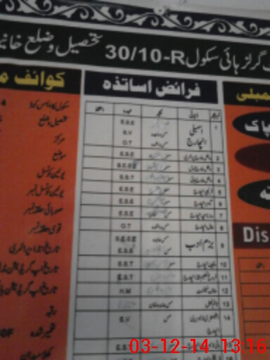 | EMIS Code: 36420114 | Name of School: GGHS 30/10-R, KACHA KHUH | |||