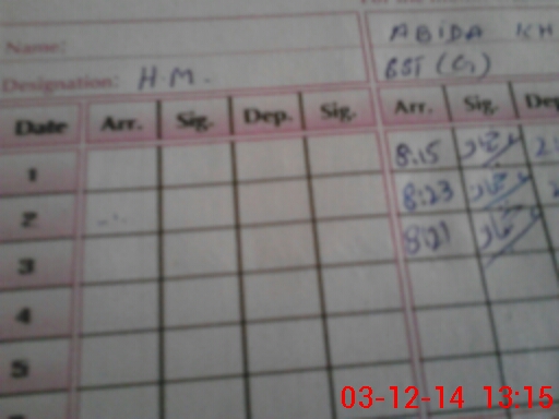 | Monitoring Date: 03-12-2014 | Start Time: 03-12-2014 01:00 PM | End Time: 03-12-2014 01:16 PM | Name of MEA: Z.**** M.Is**** | |