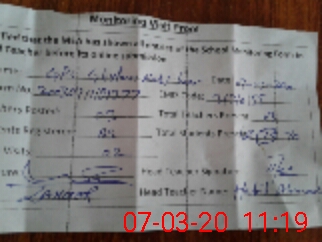 | School Visited by School Health & Nutrition Supervisor (No. of Visits) | 1 | Name1: | Sajid Mehmod | Name2: | Nil |