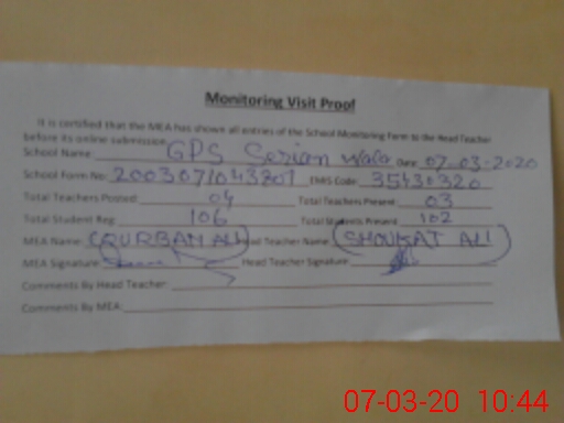 | EMIS Code: 35430320 | Name of School: GPS SERIAN WALA | |||