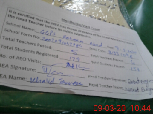 | Certified that this School was Inspected by the Undersigned MEA/DMO Today and the Information Stated Above is as Per Record. | |||||