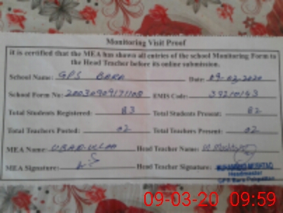 | EMIS Code: 39210143 | Name of School: GPS BARA | |||