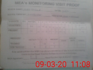 | Attendance Register | Head Teacher | MEA with School | Visit Proof |