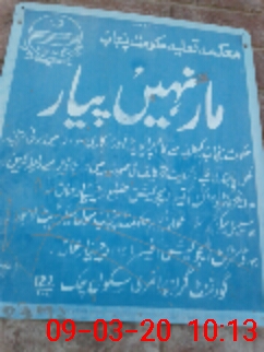 | Total no. of Classrooms: 2 No. of Classrooms Used for Teaching: 0 No. of Classrooms Storing Old Furniture, FTBs, etc: 0Comments if Any: The building department Khanpur has visited this school and declared the conditions of building dangerous as stated by the school administration |