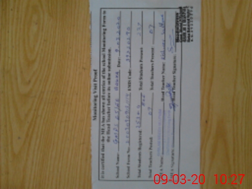 | Attendance Register | Head Teacher | MEA with School | Visit Proof |
