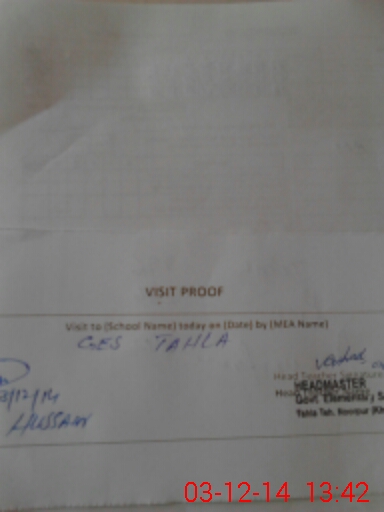 | Attendance Register | Head Teacher | MEA with School | Visit Proof |