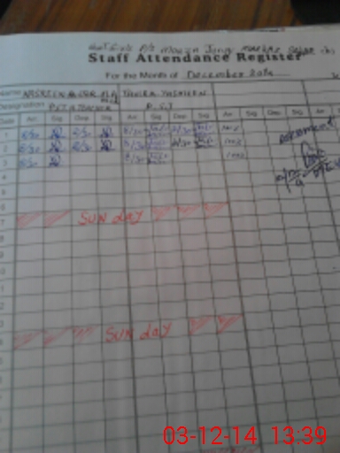 | Attendance Register | Head Teacher | MEA with School | Visit Proof |