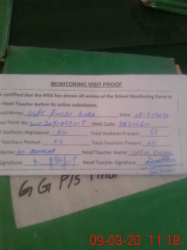 | EMIS Code: 38210610 | Name of School: GGPS PINDI KORA | |||
