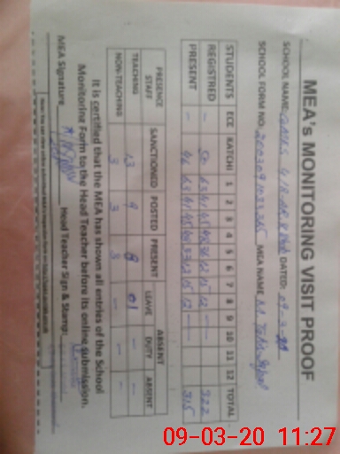 | Attendance Register | Head Teacher | MEA with School | Visit Proof |
