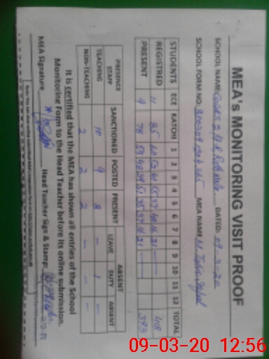 | Attendance Register | Head Teacher | MEA with School | Visit Proof |