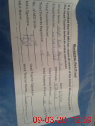 | Certified that this School was Inspected by the Undersigned MEA/DMO Today and the Information Stated Above is as Per Record. | |||||
