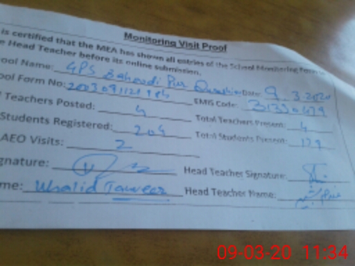 | EMIS Code: 31330479 | Name of School: GPS BAHAUDI PUR QURESHIAN | |||