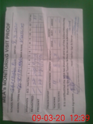 | Attendance Register | Head Teacher | MEA with School | Visit Proof |
