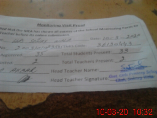 | Certified that this School was Inspected by the Undersigned MEA/DMO Today and the Information Stated Above is as Per Record. | |||||