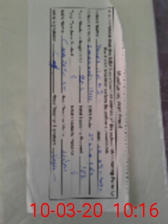 | Monitoring Date: 10-03-2020 | Start Time: 10-03-2020 08:55 AM | End Time: 10-03-2020 10:17 AM | Name of MEA: Ch**** Di**** | |