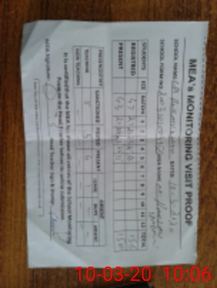 | Attendance Register | Head Teacher | MEA with School | Visit Proof |