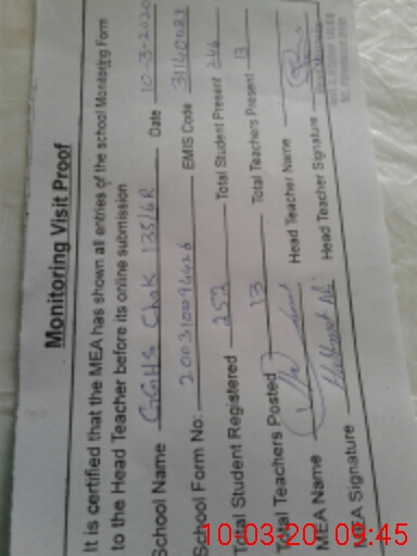 | Certified that this School was Inspected by the Undersigned MEA/DMO Today and the Information Stated Above is as Per Record. | |||||