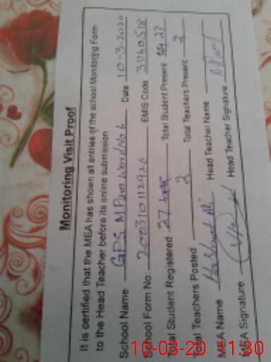 | EMIS Code: 31140518 | Name of School: GPS MUHAMMAD PURA WARD NO.6 | |||