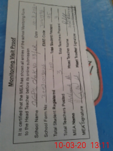 | Certified that this School was Inspected by the Undersigned MEA/DMO Today and the Information Stated Above is as Per Record. | |||||