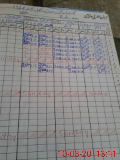 | CNIC | Full Name | Designation | R/C | Absence During Last Calender Month |