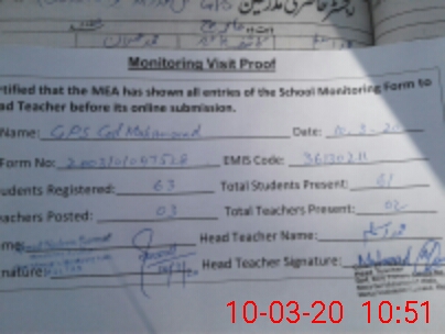 | EMIS Code: 36130211 | Name of School: GPS GUL MUHAMMAD WALA MULTAN | |||