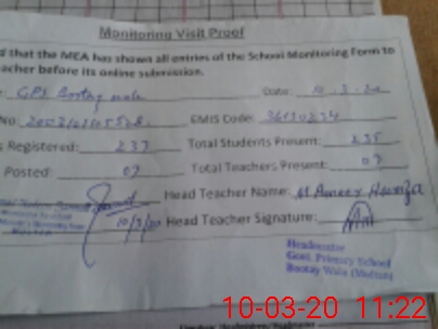 | Attendance Register | Head Teacher | MEA with School | Visit Proof |