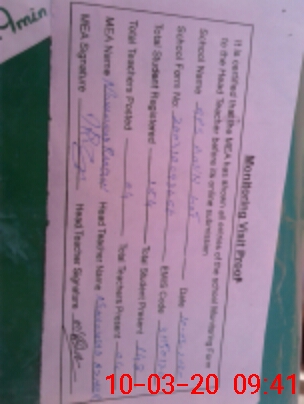 | Attendance Register | Head Teacher | MEA with School | Visit Proof |