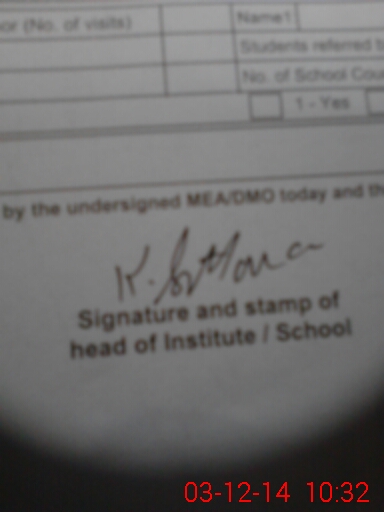 | Signature of MEA | Signature and Stamp of Head of Signature of MEA Institute / School |