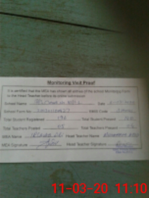 | Attendance Register | Head Teacher | MEA with School | Visit Proof |