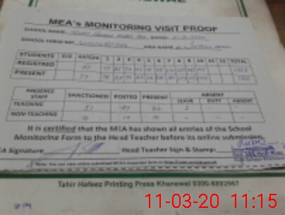 | Certified that this School was Inspected by the Undersigned MEA/DMO Today and the Information Stated Above is as Per Record. | |||||