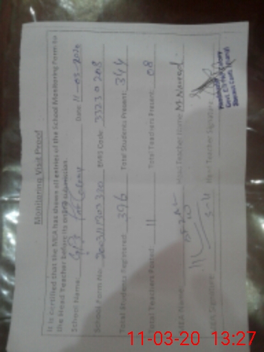 | Attendance Register | Head Teacher | MEA with School | Visit Proof |