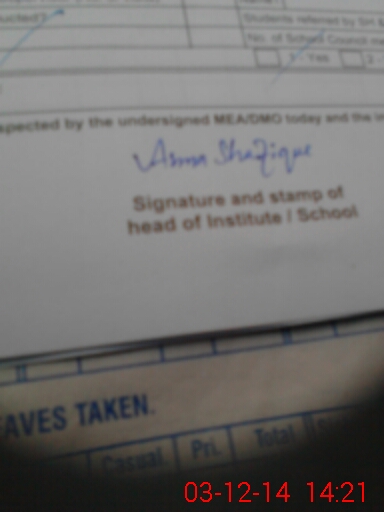 | Certified that this School was Inspected by the Undersigned MEA/DMO Today and the Information Stated Above is as Per Record. | |||||