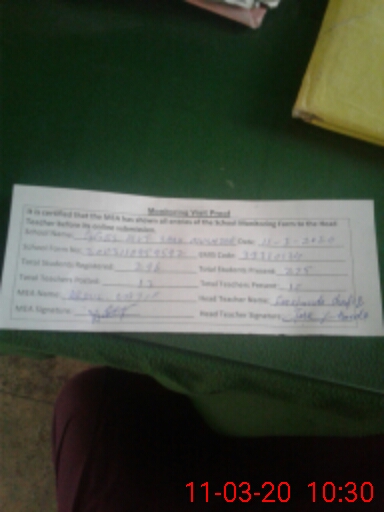 | Attendance Register | Head Teacher | MEA with School | Visit Proof |