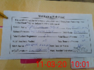 | Monitoring Date: 11-03-2020 | Start Time: 11-03-2020 09:47 AM | End Time: 11-03-2020 10:07 AM | Name of MEA: NA**** AH**** BN**** | |