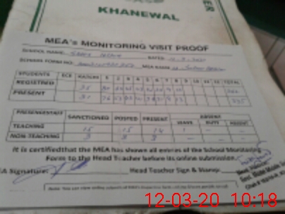 | Attendance Register | Head Teacher | MEA with School | Visit Proof |