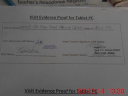 | Attendance Register | Head Teacher | MEA with School | Visit Proof |