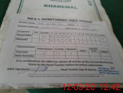 | Attendance Register | Head Teacher | MEA with School | Visit Proof |