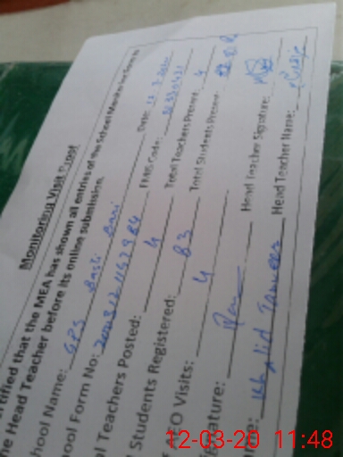 | Attendance Register | Head Teacher | MEA with School | Visit Proof |